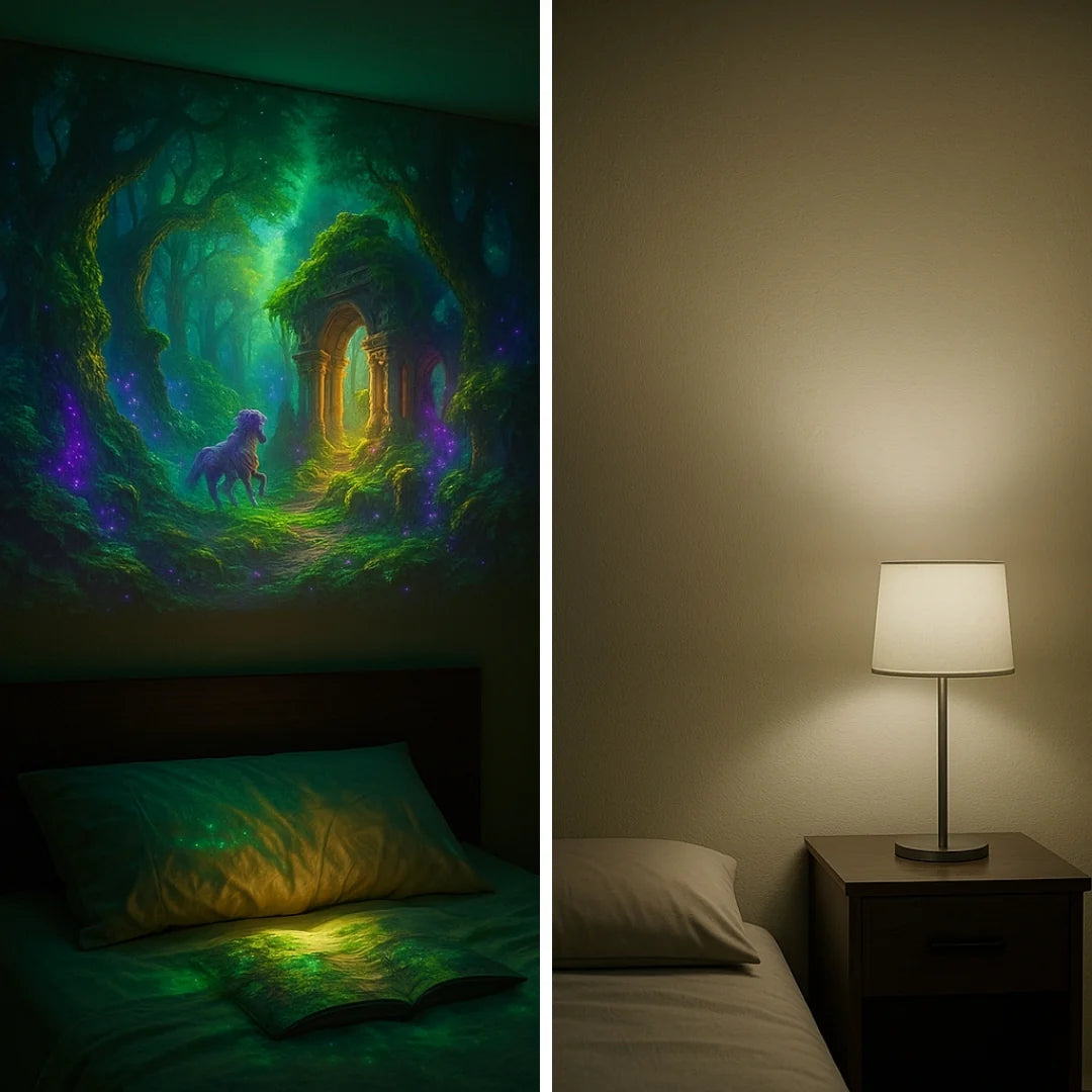 With IonTech, you can project beautiful, moving scenes on your walls or ceiling. You can make your room look like a peaceful forest, a snowy night, or anything you can imagine. It makes reading feel even more magical.